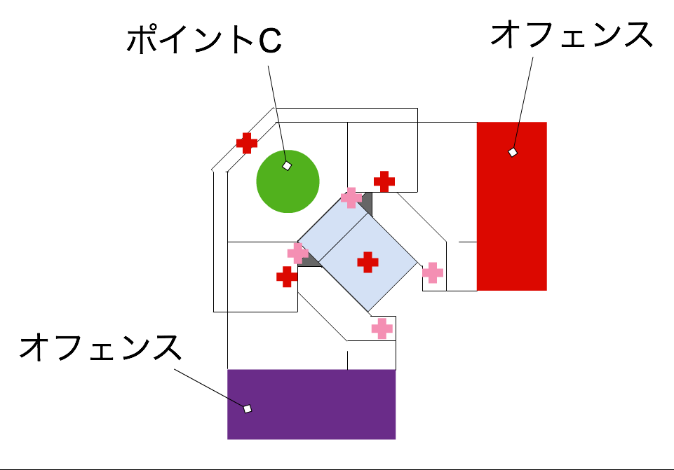 - 目標地点の周囲が水辺になっていて橋を渡って攻めるのが特徴的なマップ。