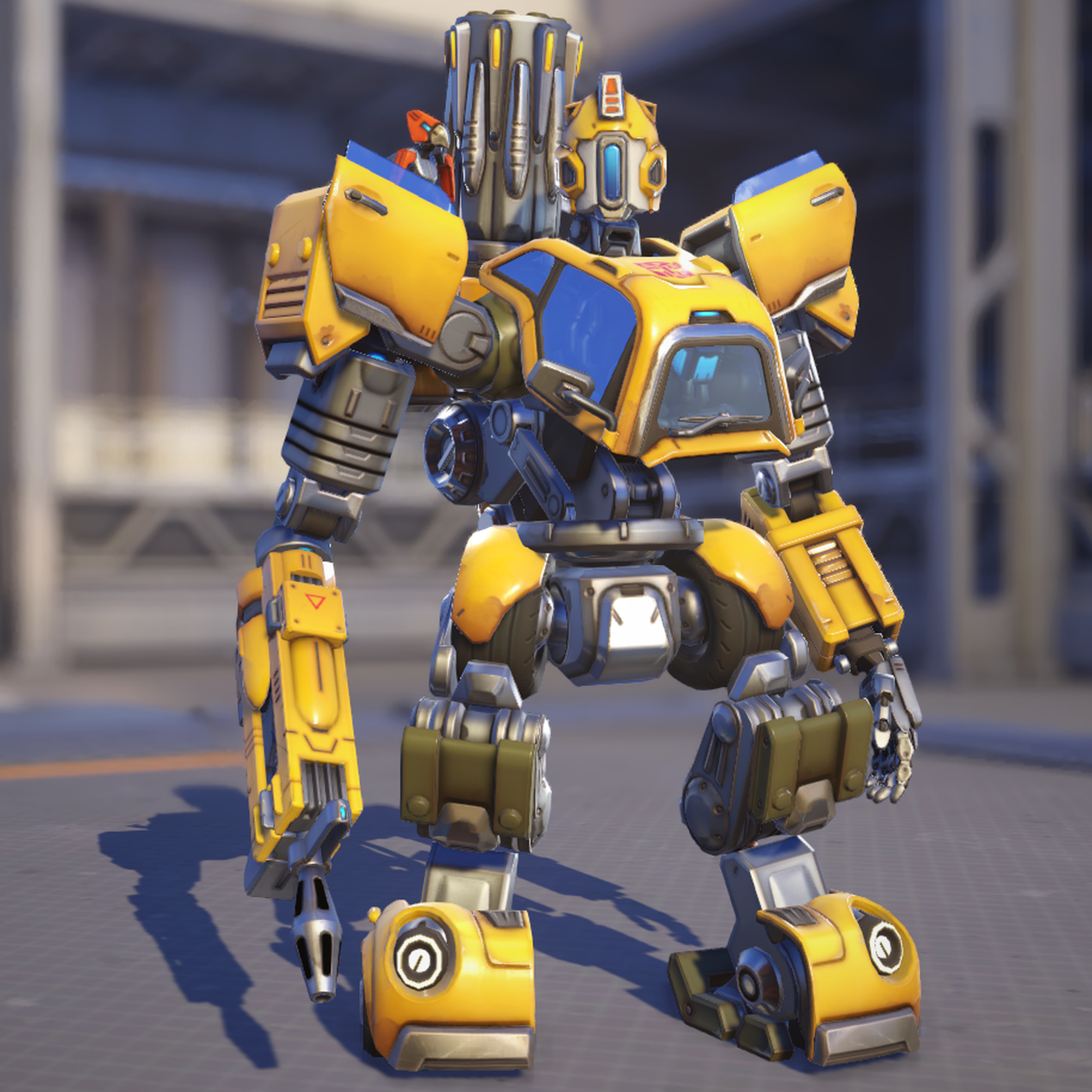 Blizzard Entertainment began collaborating with Hasbro to bring Transformers into Overwatch 2 in 2022. It was released in Season 11 due to the season's Tokusatsu theme. From the outset, it was decided that Optimus Prime would be Reinhardt and Megatron would be Ramattra, but multiple other characters were also pitched. These included a Starscream skin for Pharah, a Soundwave skin for Lucio, and a Unicron skin for Wrecking Ball. Dion Rogers has mentioned his desire to implement Grimlock and Dinbot characters. However, there was only so much time to implement the skins, so the developers went with what players would expect to see in such a collaboration (e.g. implementing Bumblebee for Bastion rather than Unicron).[2]
